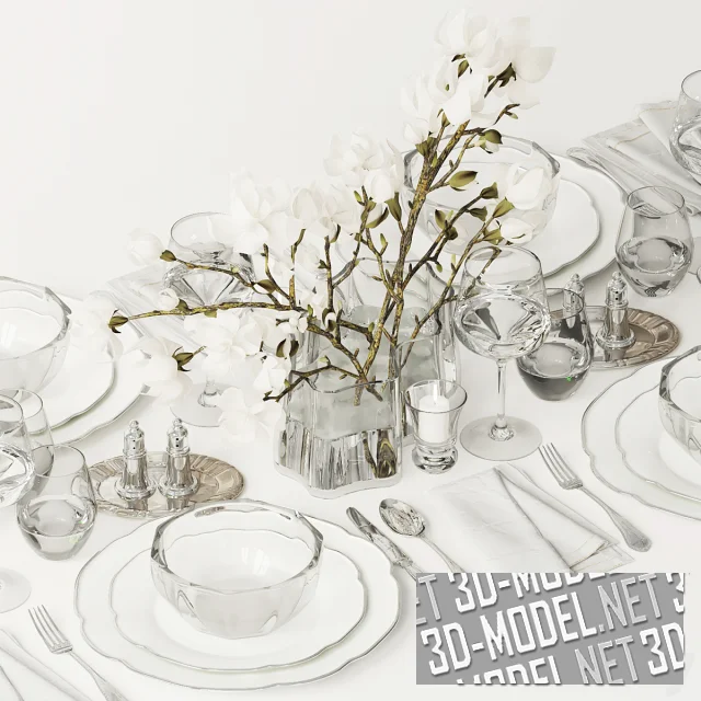 Сервировка с белым букетом магнолии
