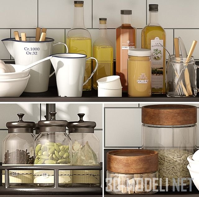 Pottery Barn предлагает полноценный комплект для дополнительной реалистичности любого проекта кухни – качественную 3D модель посуды, аксессуаров и продуктов. Присутствуют банки и емкости, тарелки, специи, мед, корзина, разделочная доска, скалка, хлеб и многое другое. Все текстуры собраны в архиве.