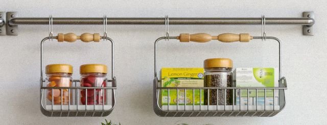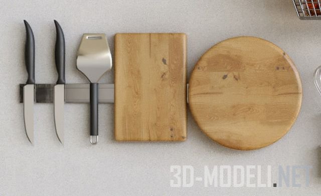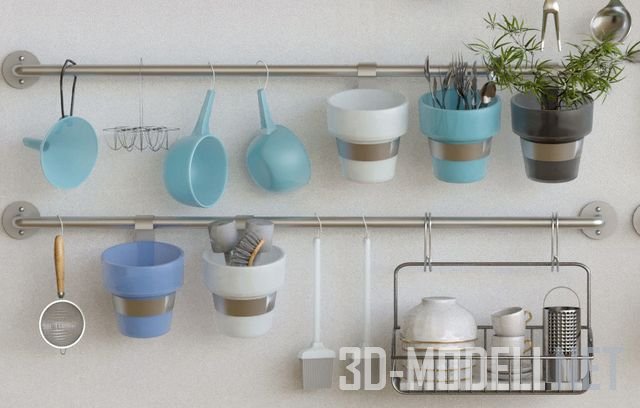 Набор предметов и аксессуаров для наполнения кухни, от бренда IKEA. В комплекте настенные варианты размещения посуды и домашних трав и утвари.