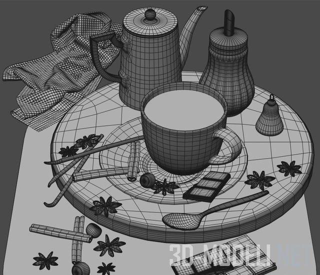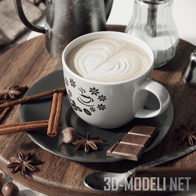 Сет для кофеманов, который придаст реализм и бодрость любому проекту. Содержит круглую деревянную доску-подставку, с дозатором-сахарницей, кофейником и чашкой капучино. Палочки корицы, черный шоколад, фундук и звездочки бадьяна служат украшением композиции и вносят свою долю аромата.
