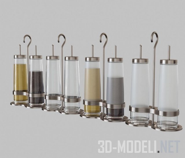 Четыре двойных емкости IKEA Droppar, предназначены для масла и уксуса. В двух из них налиты, соответственно, масло и уксус, а две пустые. Можно использовать как деталь интерьера в современной кухне.