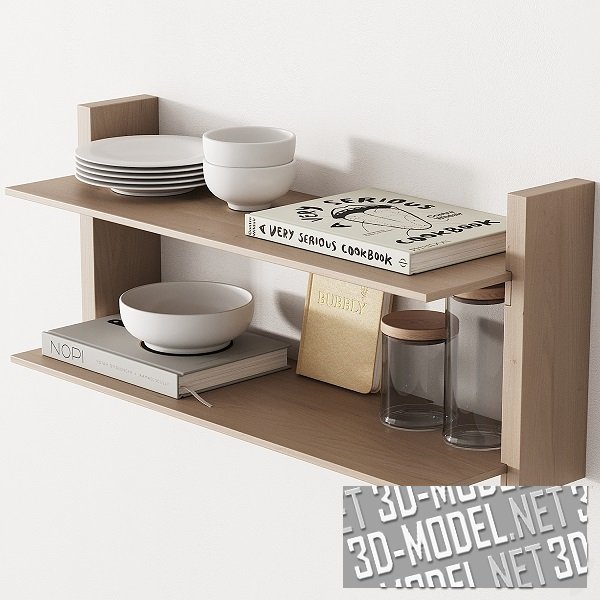 Книги и посуда на полках