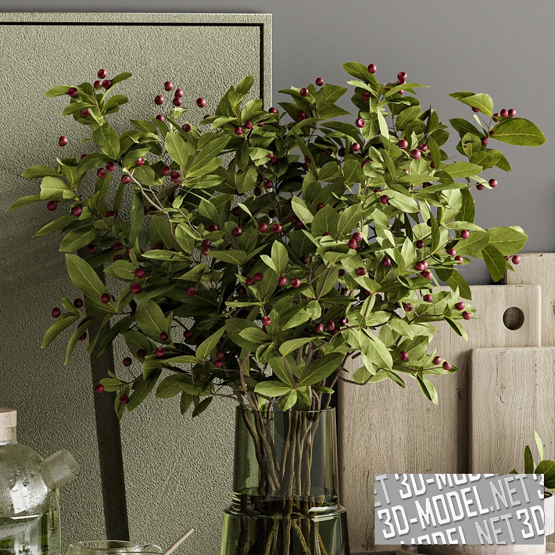 Кухонные аксессуары с букетом оливковых ветвей в вазе