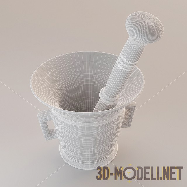 3D модель старой медной ступки с двумя ручками по бокам и пестиком внутри. Очень колоритная деталь, которая придаст интерьеру кухни дополнительную достоверность и налет ретро-стиля. Можно также использовать ее в качестве контрастного приема в абсолютно современном пространстве. Модель имеет хорошую сетку, все текстуры, представлена в формате 3ds max 2014, (рендер Vray) и fbx.