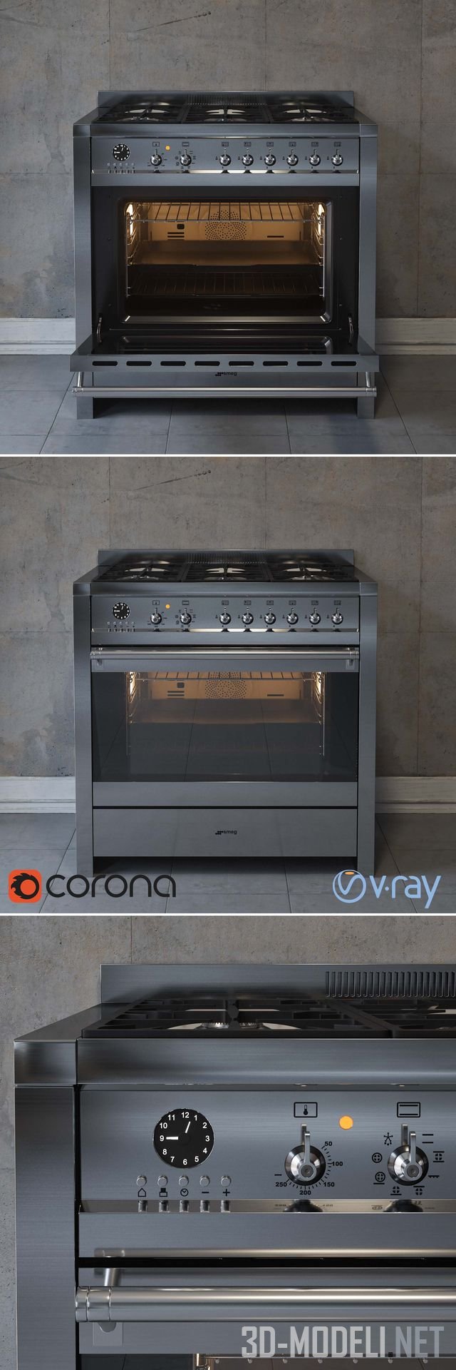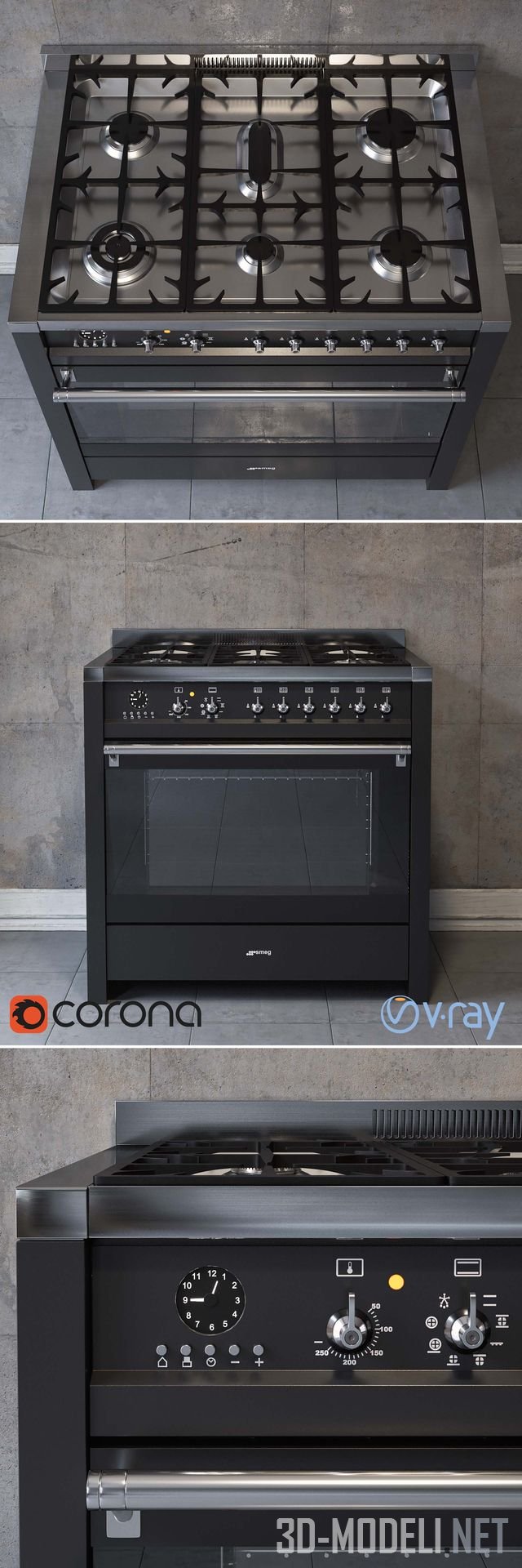 Отдельностоящий варочный центр для классической кухни, серия Classica (90 см), модель Smeg CS19A-7. Для духовки представлены два варианта материалов: антрацит и нержавеющая сталь.