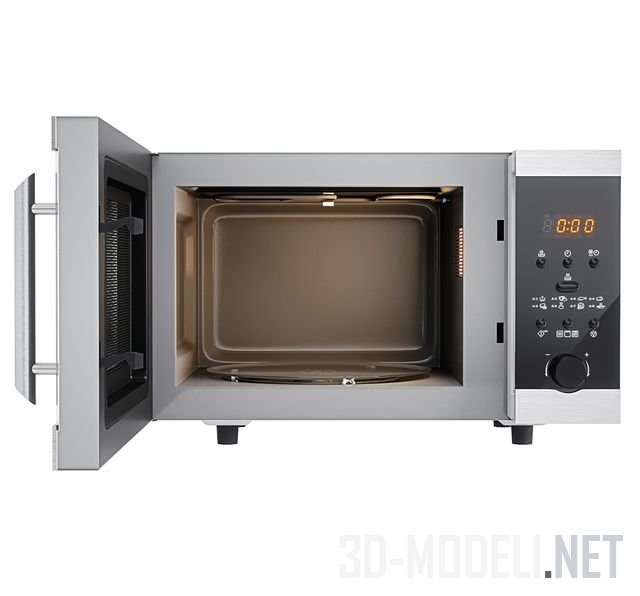 Стильная современная микроволновая печь модели EMS20300OX от Electrolux. Прибор с боковой панелью черного цвета и открытой дверцей.