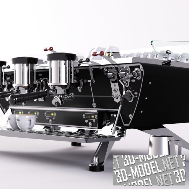 Современная кофемашина Spirit Tiplette для кафеен от голландского производителя с мировым именем Kees Van Der Westen. Профессиональная модель на три лейки, с широкой хромированной площадкой с подогревом чашек и с индикацией температуры. С трех сторон площадка прикрыта стеклянными бортиками. Черный корпус - на хромированных ножках.
