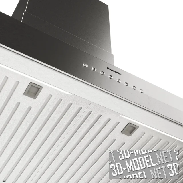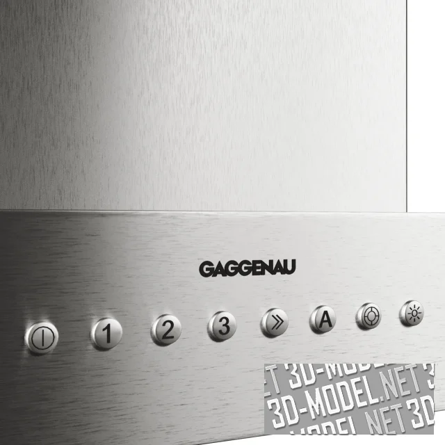 Профессиональные пристенные вытяжки из серии AW442 от Gaggenau (модели: AW442120, AW442160, AW442190). Приборы оснащены функцией автоматической регулировки мощности с помощью датчика в зависимости от количества образующегося пара. Серебристые корпуса с прямоугольными решетками в нижней, чуть наклонной плоскости представлены в трех типоразмерах: 120, 160 и 190см. Мелкие круглые кнопки управления размещены на передней плоскости прямоугольного корпуса вытяжки.