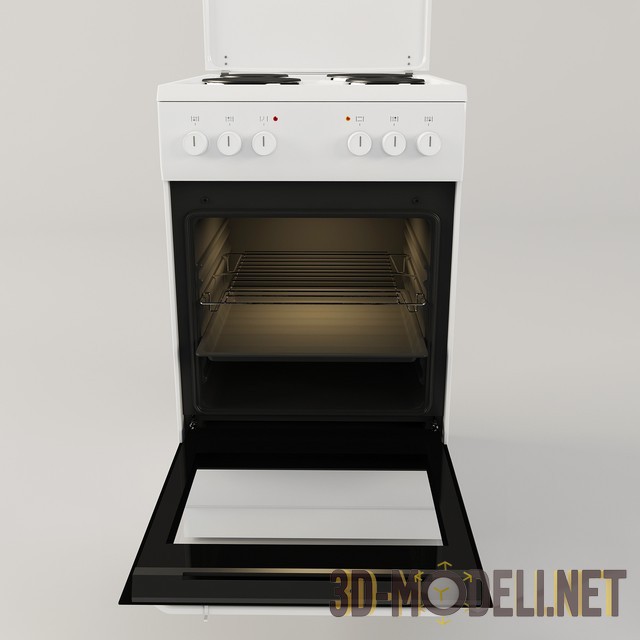 3d модель современной электрической плиты Hansa Integra FCEW 54120. Модель отличается стильным и лаконичным дизайном, имеет четыре конфорки, духовка емкостью 69 л. Габаритные размеры плиты: