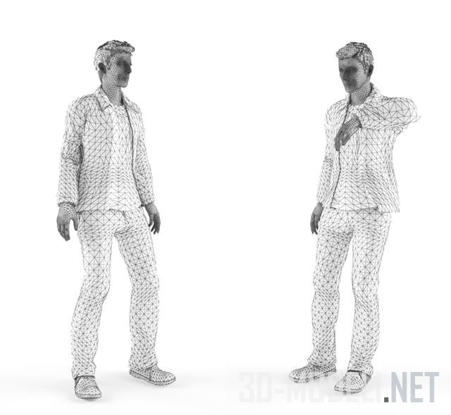 Трехмерная модель современного молодого человека в коричневой спортивной куртке на замке, черных джинсах и черных кроссовках с белыми шнурками и на белой подошве. У парня короткие каштановые волосы и достаточно реалистичные черты лица. Фигура представлена в двух позах и может быть использована при разработке интерьеров общественных помещений, кафе, баров, офисов и др.
