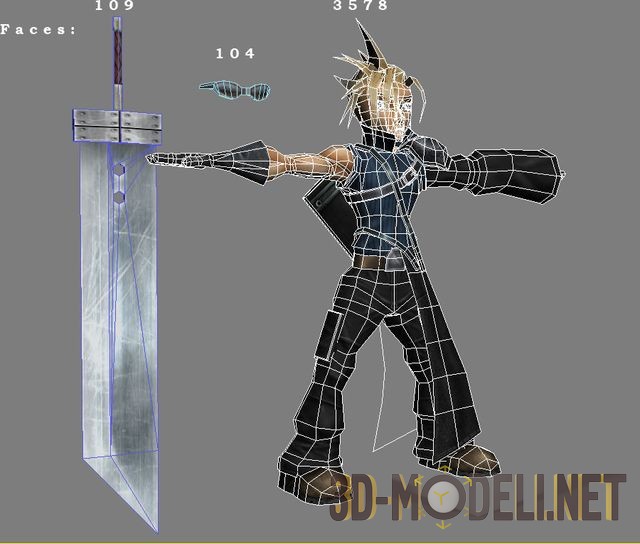 Представляем на ваш строгий суд детально проработанную 3D-модель Клауда – персонажа из мультфильма Final Fantasy VII – Advent Children. Сходство просто поразительное! Трехмерный герой состоит всего лишь из 3791 треугольника и, как следствие, может быть импортирован в любую современную компьютерную игру – например, в Final Fantasy XI. Обращаем ваше внимание, что в архиве, помимо самой модели, вы найдете симпатичный авторский набросок (скетч, если хотите).