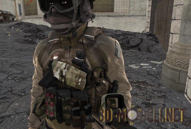 3D-модель игрового персонажа «USA assault» – американского солдата из видеоигры «Battlefield 4». В архиве с моделью солдата включены текстуры с UV-развертками, карты нормалей и блика в высоком разрешении (1024x1024 и 2048x2048 px, формат: TGA).