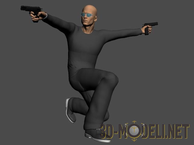 Высокополигональная модель наемного убийцы. В общих чертах персонаж смахивает на Морфеуса из кинокартины «Матрица». На создание модели автор потратил ровно три дня. Виртуальный киллер состоит примерно из 170 тыс. полигонов, текстуры отсутствуют.
