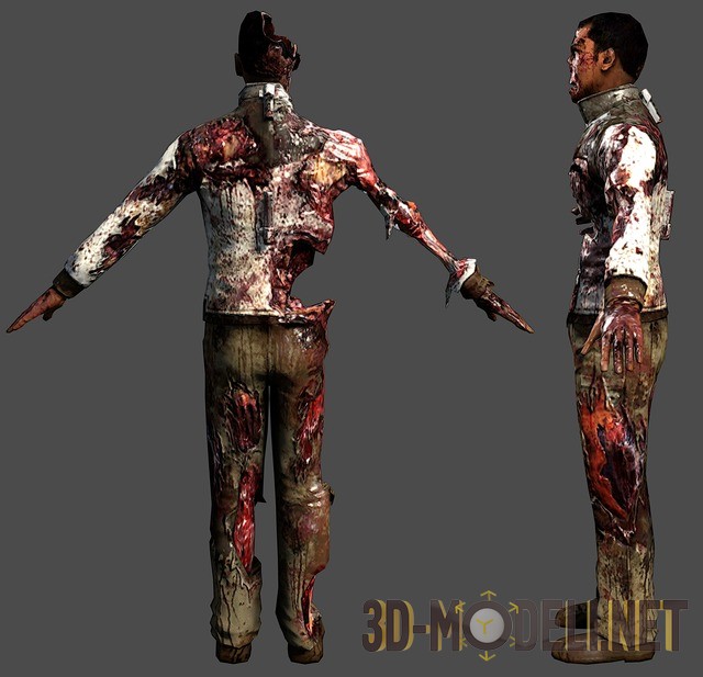 3d-модель изуродованного трупа гражданского персонажа, из компьютерной игры ужастика «Dead Space 3». Модель в архиве в формате OBJ с текстурами, картами нормалей и блика. Есть скриншот персонажа с разных ракурсов.