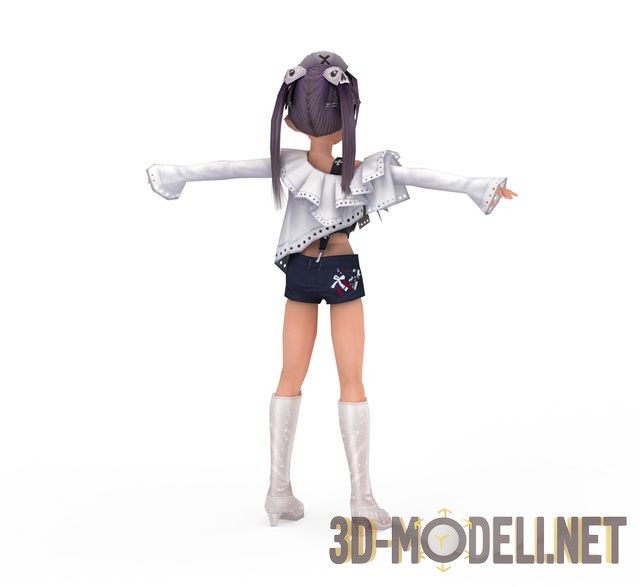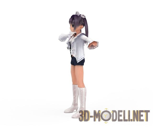 3D-модель персонажа - девочки в стиле аниме. Модель выполнена в формате Low-Poly, в комплекте есть текстуры с развертками. Акуратная модель анимешной девочки, вполне пригодна для риггинга, анимации и использовании в играх.