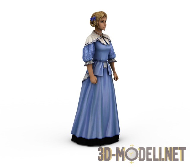 3D-модель женщины в длинном, красивом платье. Это добротная Low-Poly модель, пригодная для использования в игровых проектах. В комплекте имеется текстура в формате TGA с развернутыми элементами модели женщины. Пропорции и размеры соблюдены.