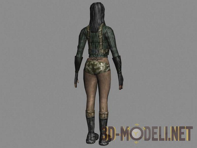 Данный женский персонаж Kira является одним из рядовых солдат повстанцев. Изначально задумывался как строгий персонаж беспрекословно выполняющий любые приказы. На изготовление 3D-модели, а так же текстуры ушло 3-4 дня. Количество полигонов - 2300.