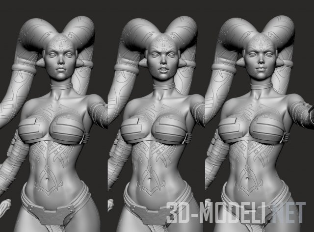 3D-принт модель персонажа из саги Star Wars, Darth Talon. Девушка украшена черными татуировками ситхов, покрывающими ее тело, включая голову (каждая татуировка была заработана в ритуальном бою).
