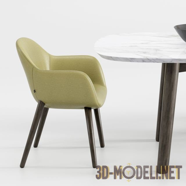 Обеденная группа в современном стиле: стол и стулья Mad, дизайнер Marcel Wanders (2015). Предметы коллекции отличает простая, но элегантная и утонченная форма, качественные материалы и универсальный дизайн.