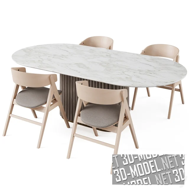 Обеденный стол NEWMAN от Cazarina и стулья WATERTON от Rowico Home образуют гармоничный ансамбль, сочетающий скандинавскую легкость и современный минимализм.