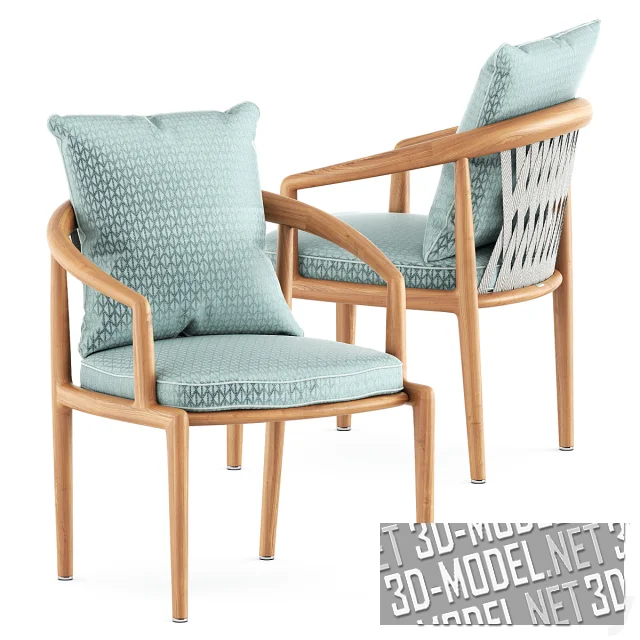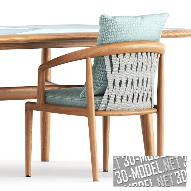 Современный комплект обеденной мебели с гладкими деревянными каркасами - стол и стулья с подлокотниками, Secret garden из коллекции Boundless Living Outdoor от Poltrona Frau (дизайн: