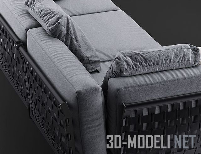 Модульный современный диван Cestone 09 от Flexform, с серой мягкой обивкой. В конструкции дивана присутствуют небольшие приставные поверхности, с вариациями монтажа. Они используются, как столики или полки. В комплекте с диваном представлены серо-коричневый плед, черные и белая диванная подушки.