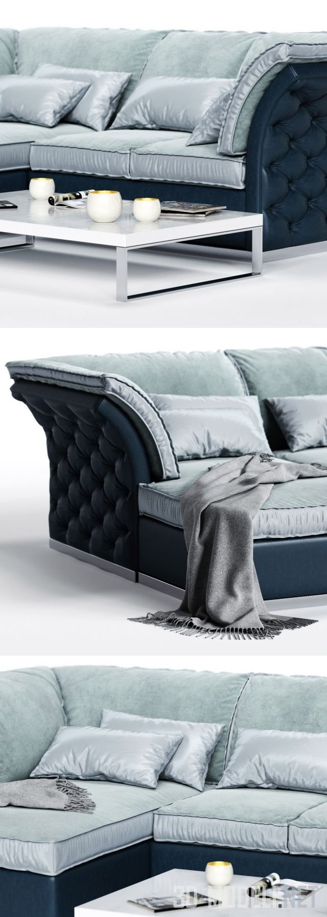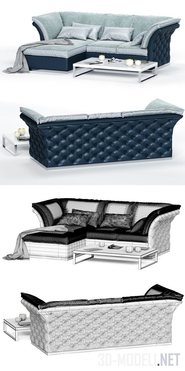 Изысканный мебльный набор для классической гостиной, диван Tiago (255 x 175 x 90 см) и кофейный столик Quadra (130 x 80 x 24,5 см) от Corte Zari.