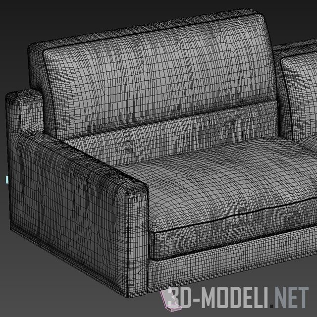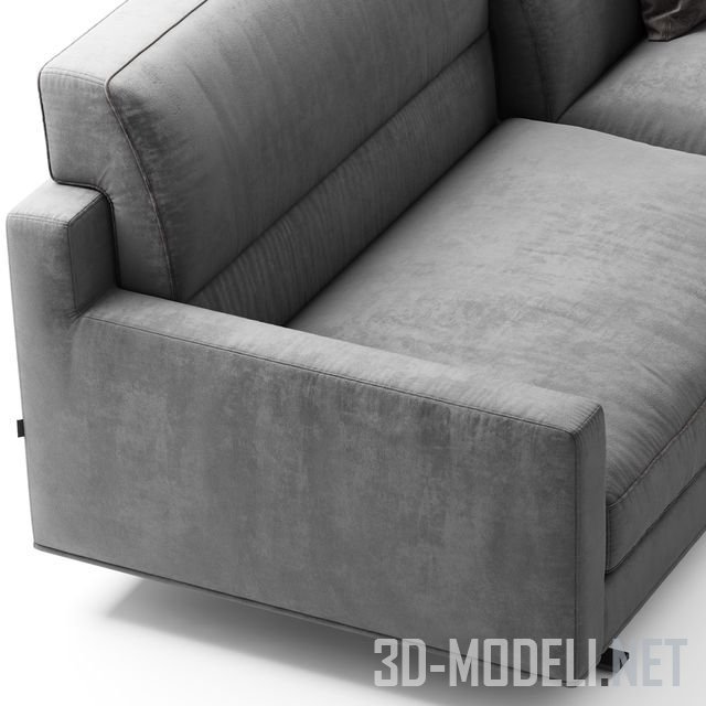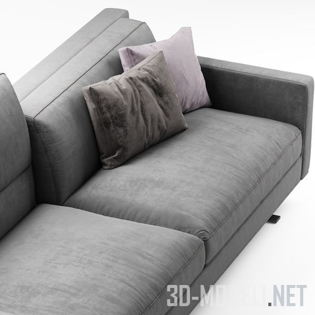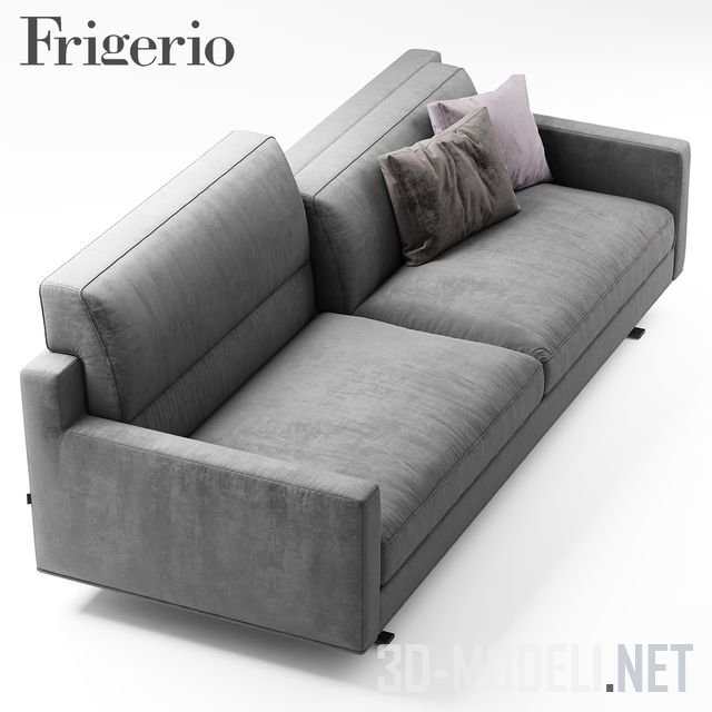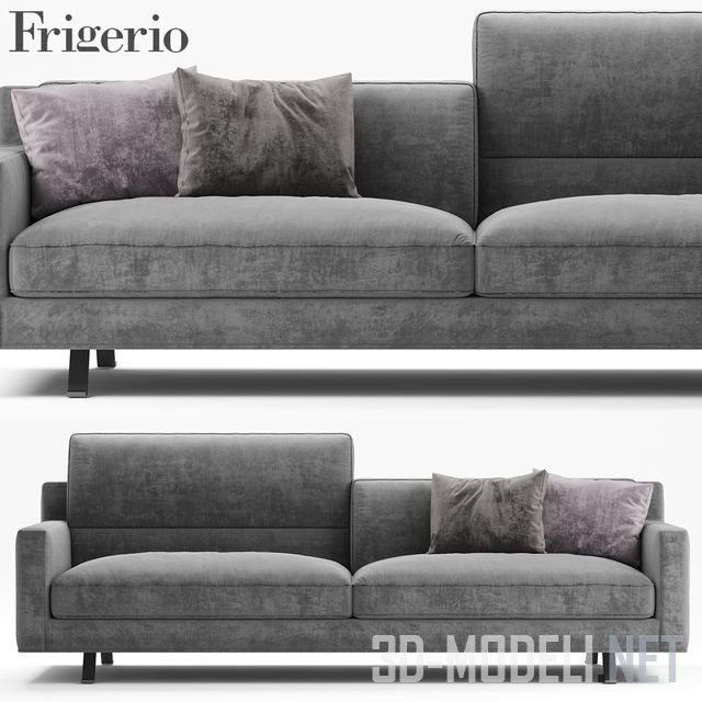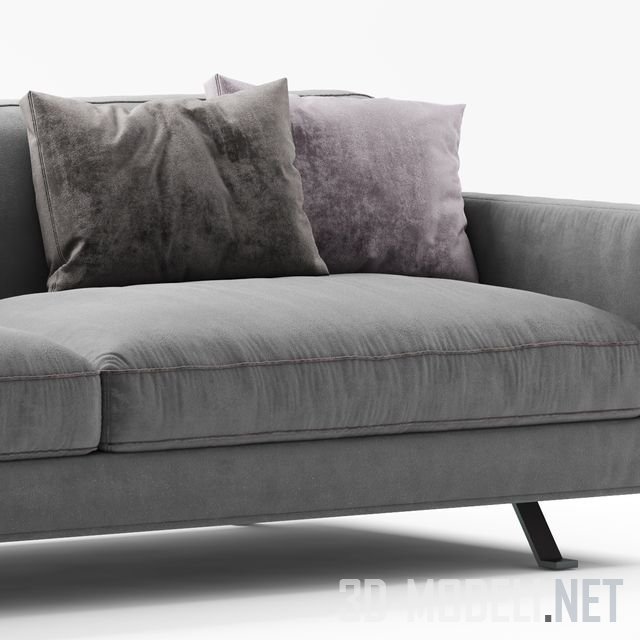 Современный прямой двухместный диван мышиного цвета, модель James от Frigerio. Поверхность дивана дополнена парой подушек графитового и легкого серо-сиреневого оттенка. Качественная и реалистичная 3d модель.