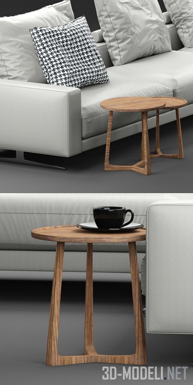 Светло-серый современный угловой диван Campiello от Flexform. Лаконичные формы, прямые линии, невысокая спинка с валиками дополняют большие мягкие подушки на спинках, цвета обивки дивана и в мелкую черно-белую клетку. На диван наброшен плед в клетку. Перед диваном расположились три небольших столика-подставки в виде деревянных рустикальных трехногих табуретов с круглыми поверхностями. На одном из столиков - чашка с блюдцем.