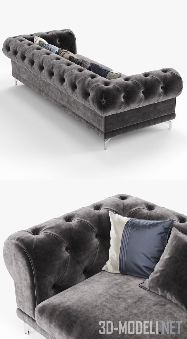 Качественная 3d модель элегантного дивана с декором в виде простежки, выполненной в технике капитоне. Размеры дивана: 2480 x 1060 x 700 мм.