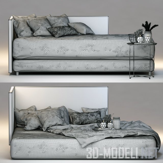 Диван Skeidar Tina, для современного интерьера. В сложенном виде диван имеет размер 89 х 205 см, в разложенном - 164 х 205 (архив содержит оба варианта). В комплекте столик и декор (свечи, подушки, виноград, поднос, книга).