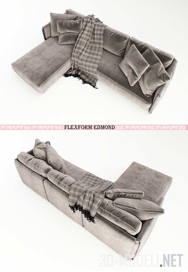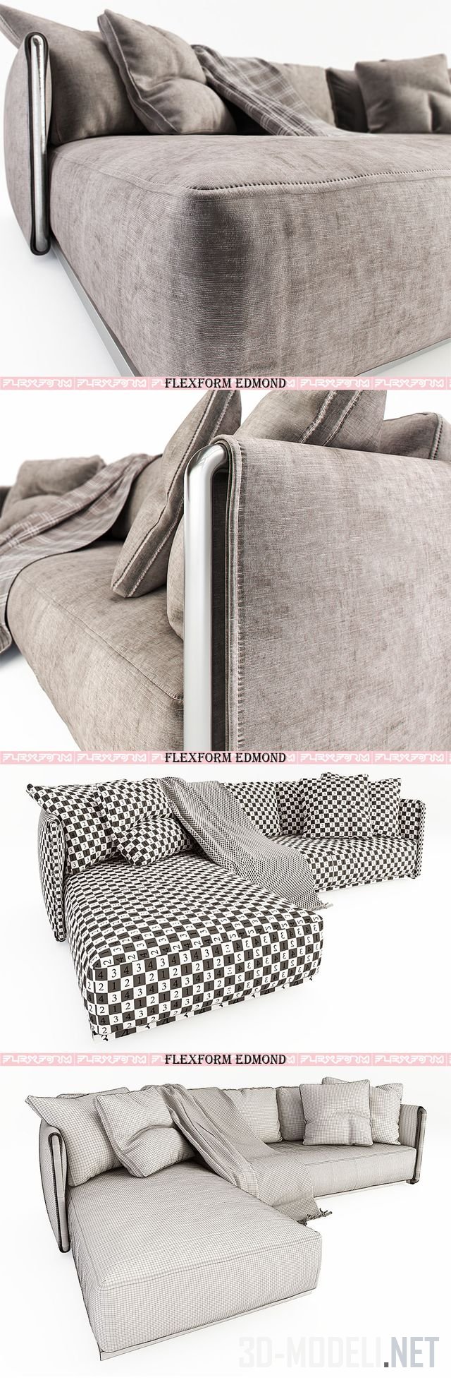 Мебель для современной гостиной, качественная 3d модель углового дивана Edmond от итальянской фабрики Flexform. Размеры дивана: