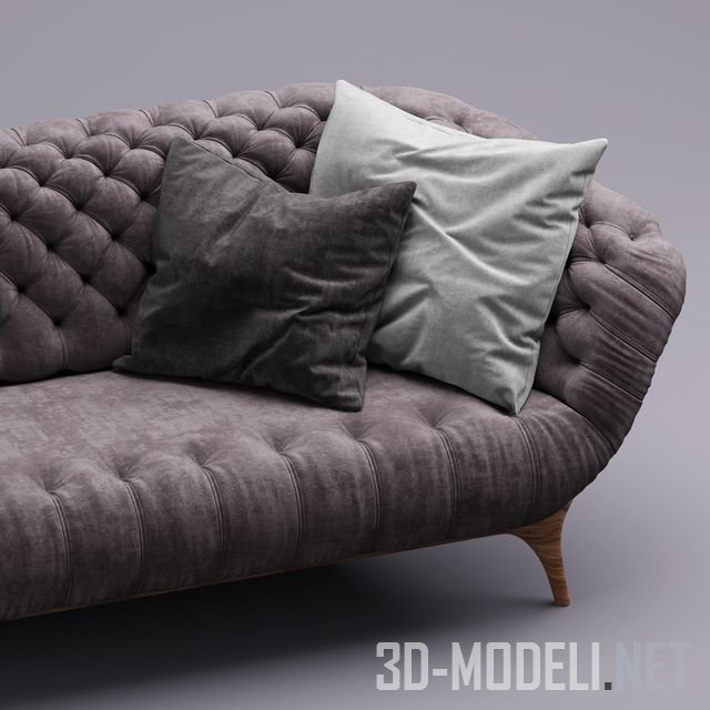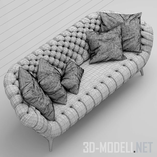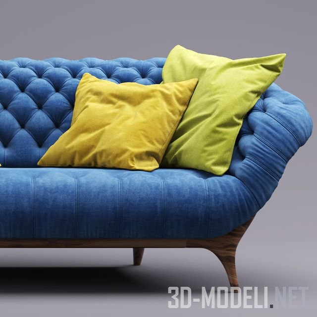 Изящный диван на ножках, модель VICTOR от Vibieffe. Простежка капитоне и яркие подушки придают дивану нарядный вид.