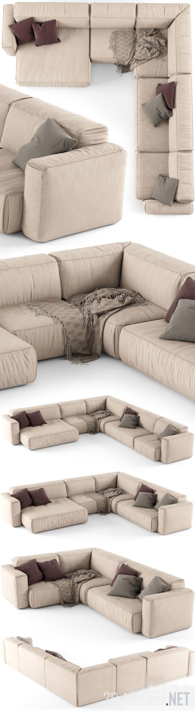 Современный угловой диван серии SOFT от Koo International. Диван может иметь более компактный размер (это достигается путем удаления крайних модулей). Диванные подушки и плед добавляют модели еще большую достоверность.