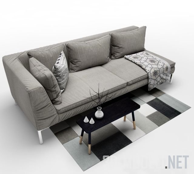 Современный диван Charles от B&B Italia, представлен с набором декора: это ваза, ковер, плед, подушки. Журнальный столик также присутствует в комплекте.