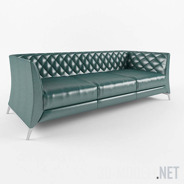 Классический диван Grassy от бренда Natuzzi, обтянут красивой мягкой кожей насыщенного мятного цвета. На спинке и подлокотниках имеется простежка капитоне. Стол и ваза дополняют модель.