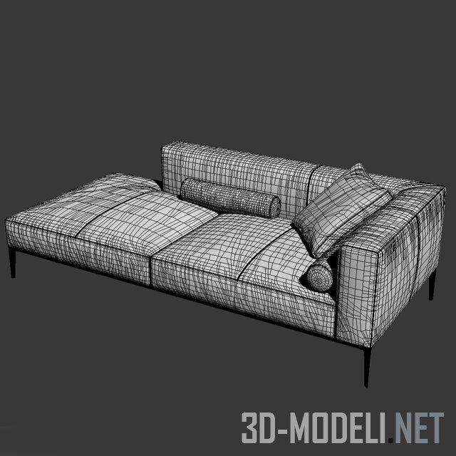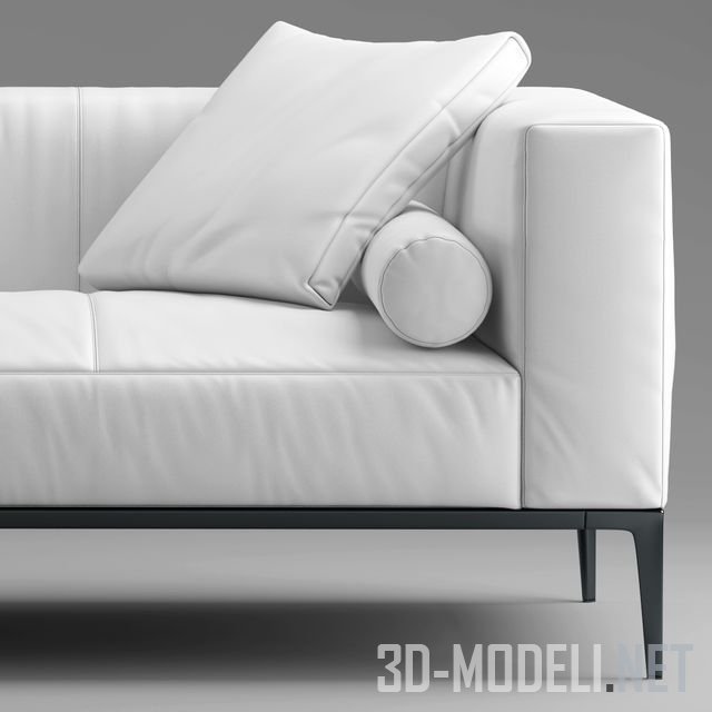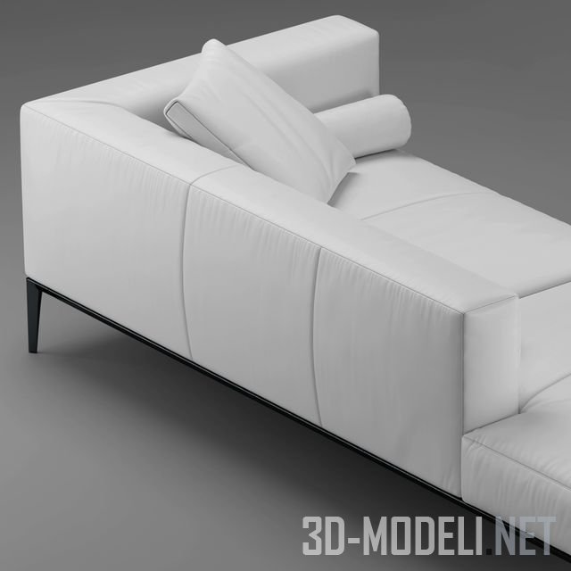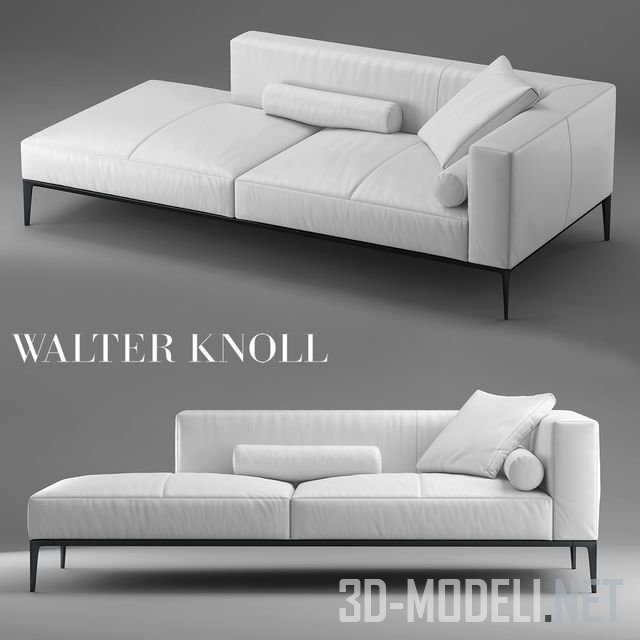Современный диван с одним подлокотником, подушкой и валиками, на тонких ножках. Модель Jaan living от Walter Knoll. Материалы настроены, текстуры в архиве.