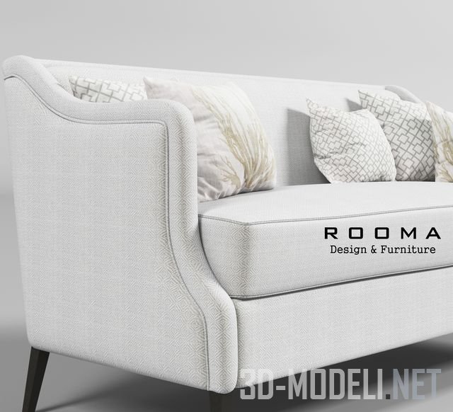 Красивый диван в классическом стиле с деревянными ножками (массив дерева), светлой текстильной обивкой и декоративными подушками. Модель Soft от Rooma Design. Размеры дивана: 1760 х 800 х 950.