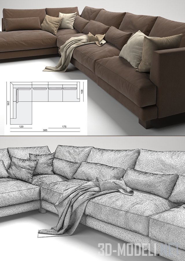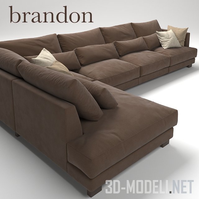 Современный угловой диван Brandon от Sits. Диван красивого шоколадного цвета, с двойным рядом подушек и пледом.