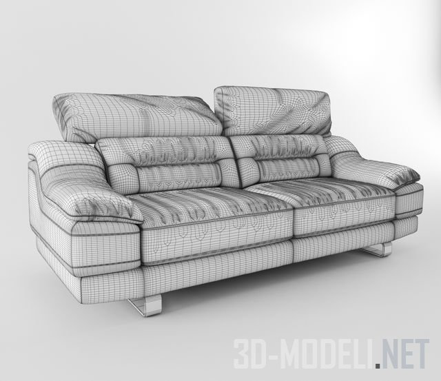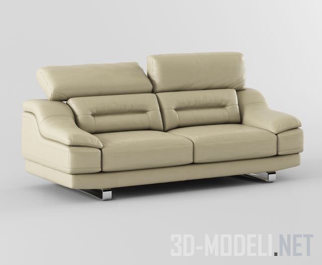 Большой, мягкий трехместный диван, в отделке из кожи бежевого цвета. Характерной деталью дивана можно выделить мягкие плоские подлокотники. Размер дивана: 2063 х 926 х 982.