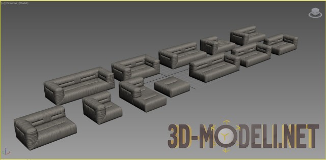 3D-модель модульного дивана «Nuvola» от Bonaldo. «Nuvola» – это система модульных сидячих мест, предназначенных для удовлетворения различных потребностей пространства. Дизайн характеризуется мягкими и пышными формами, которые предлагают абсолютную расслабленность. Покрытие, которое является полностью съемным, доступно в ткани и кожи. Ножки сделаны из антрацитово-серого окрашенного дерева. В сцене присутствуют все возможные модули для разнообразных комбинаций.