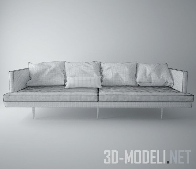 Стильный и современный диван, дизайн которого отличает темная обивка, лаконичность форм и тонкие хромированные ножки.
