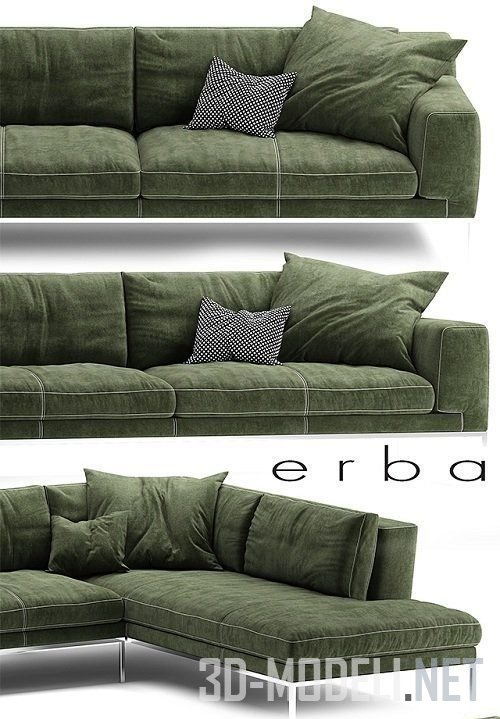 Секционный угловой диван ERBA от ITALIA EDIZIONE. Диван с велюровой обивкой болотного цвета, в комплекте с черно-белой пестрой подушкой. Высококачественная 3d модель с текстурами в архиве.