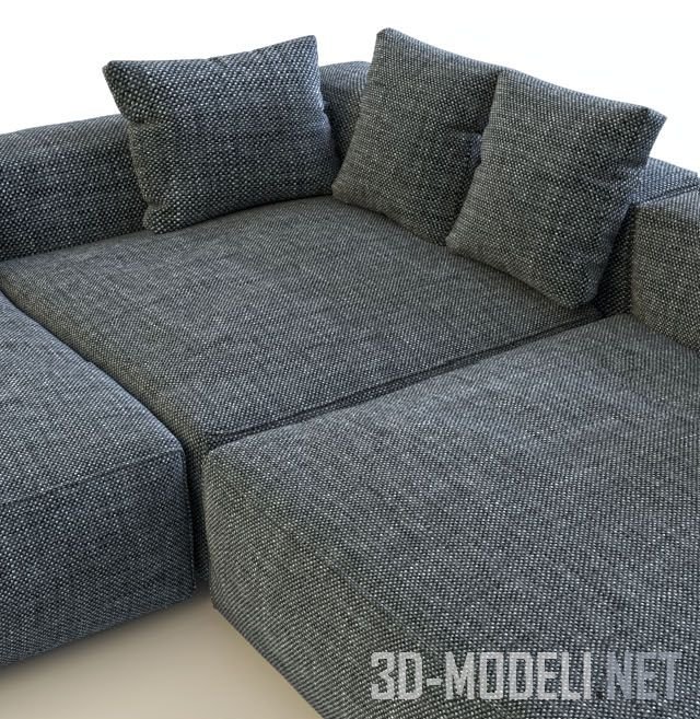 Современный мягкий диван Cooper с обивкой из серого текстиля, от итальянской фабрики Frigerio. Секции сидений дивана выполнены в виде низких квадратных подушек. Спинки секций низкие, прямоугольные, дополненные небольшими подушками в цвет обивки дивана.