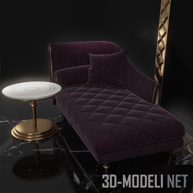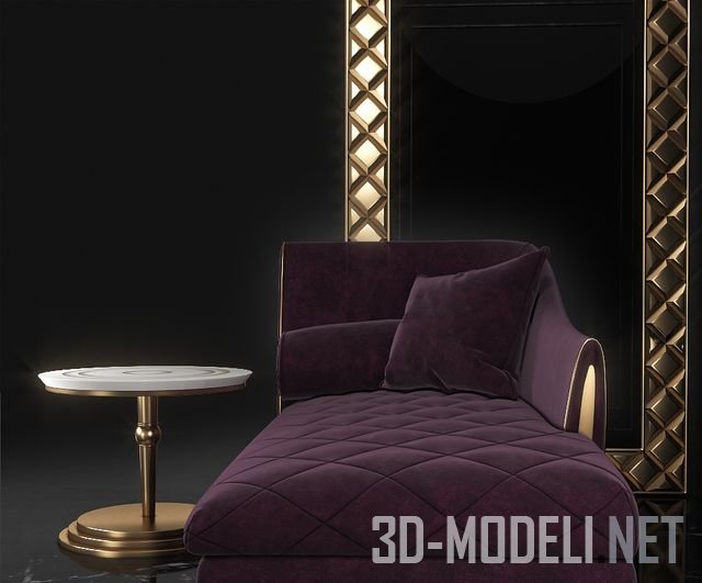 Гламурная кушетка для отдыха, модель Sipario от Arredoclassic. Размер кушетки: 1640 x 850 x 900 мм. Кофейный столик и рама в отделке золото подчеркивают элегантный стиль и роскошь кушетки.