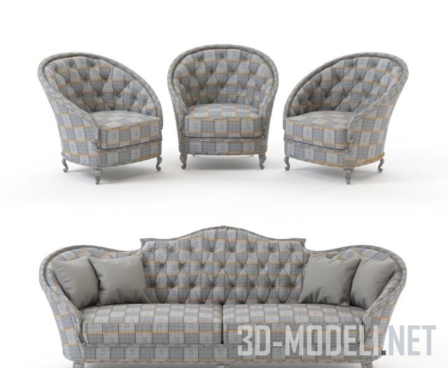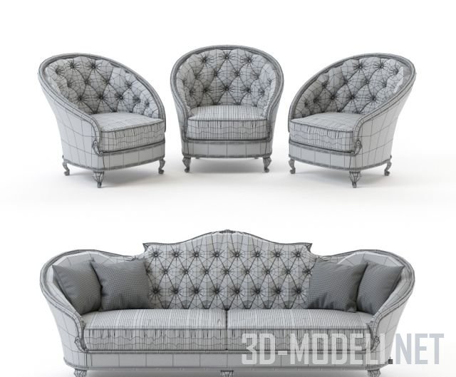 Классический вариант мягкой мебели для элегантного пространства, дизайн Giuseppe Tempesti, коллекция Eden – диван и кресло производства GoldConfort. Мебель имеет фигурную спинку, простежку капитоне и роскошную обивку.