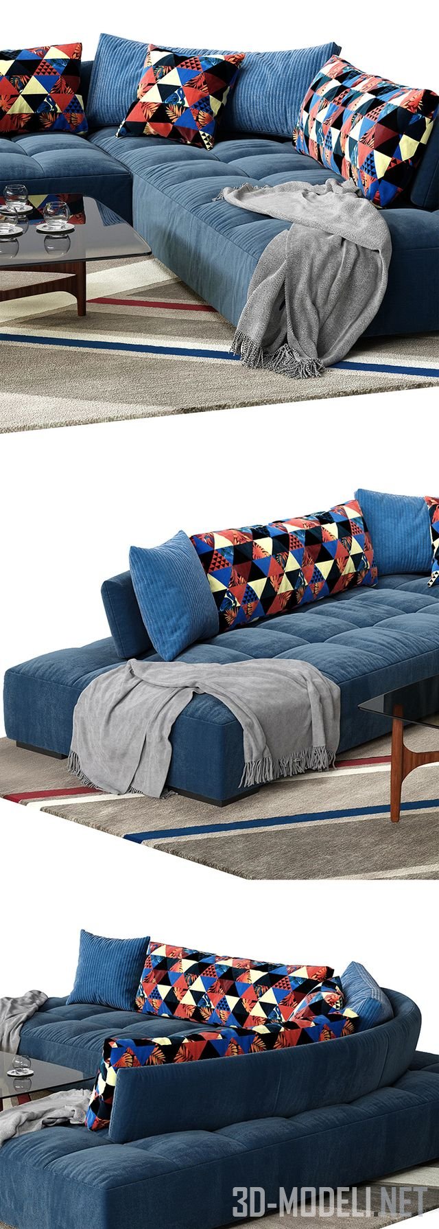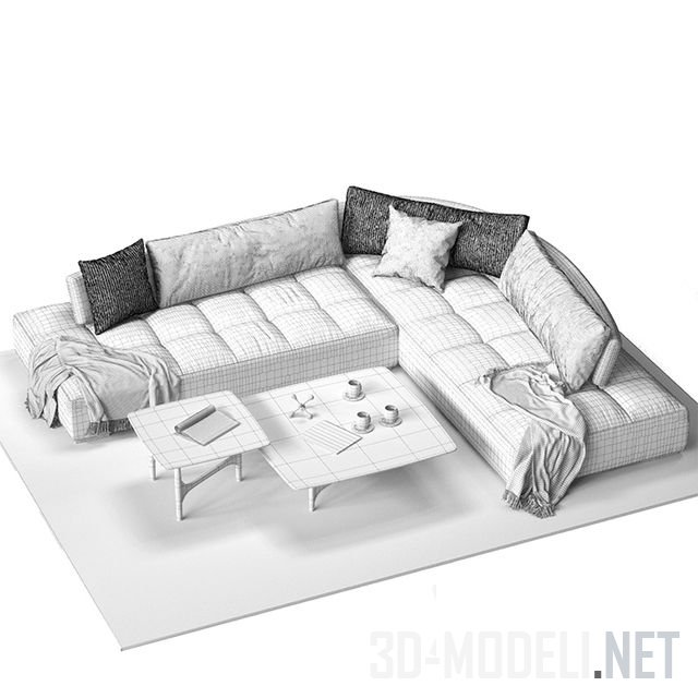 Большой диван Calanque от Roche Bobois, разработанный дизайнером Giorgio Soressi. Диван имеет две большие прямоугольные платформы, соединенными под углом. Основа дивана сделана из металла с хромированной отделкой. Модель с изогнутой спинкой и набором подушек для создания индивидуального комфорта сидящего на диване.