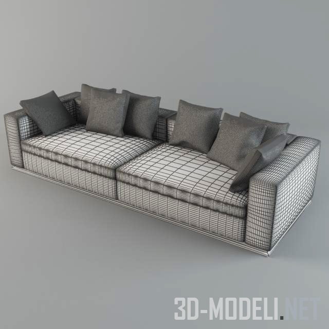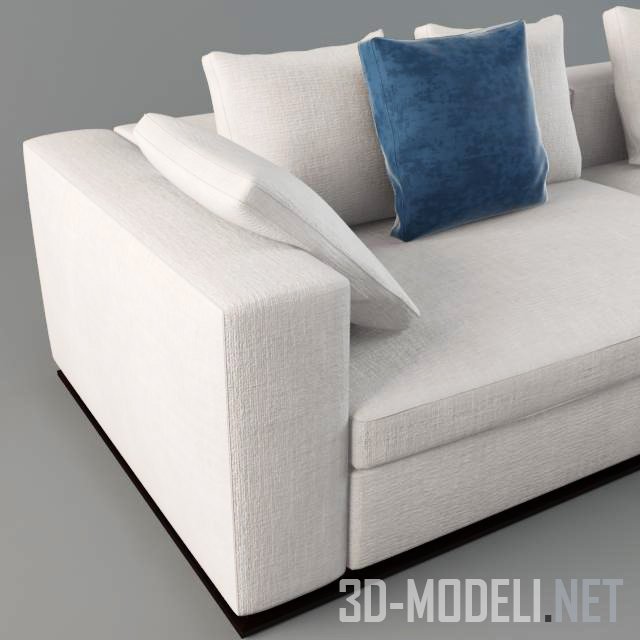 Современный белый диван производства Minotti, серия Leonard, станет украшением интерьера. Несмотря на внушительный размер, диван смотрится очень изящно. Подчеркнутый темным кантом силуэт смягчают дополнительные белые и синие подушки, которые можно трансформировать в любой плоскости.