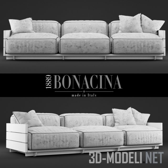 Современный диван, сделанный из деревянных поддонов, разработан дизайнером Piero Lissoni в 2011 году для бренда Bonacina 1889. Светлые доски поддонов красиво сочетаются с большими толстыми белыми подушками сиденья и спинки и маленькими декоративными подушечками цвета какао с молоком.
