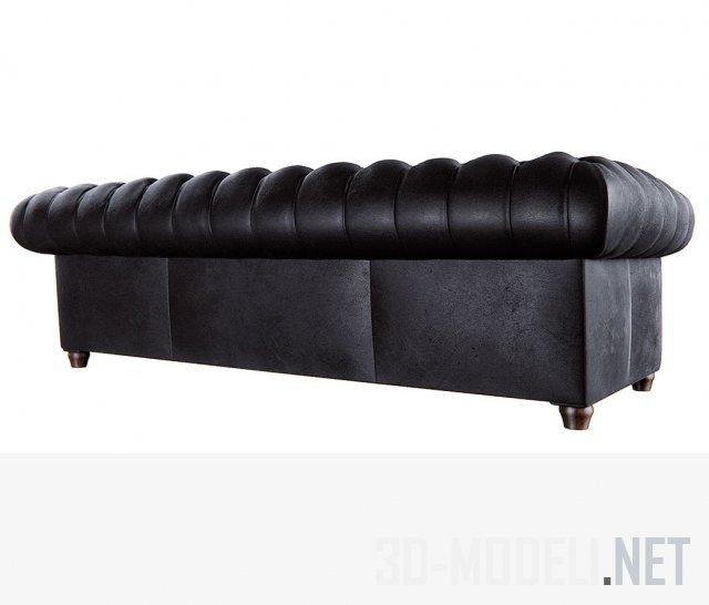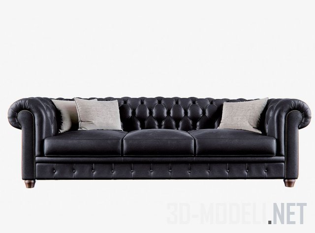 Шикарный кожаный диван черного цвета Poltrona Frau Chester One. Диван на деревянном каркасе, оформленный обивкой с декоративной стежкой-капитоне. Такой диван будет хорош в интерьере кабинета, выполненного в классическом стиле. Размеры дивана: H 43/67 см, L 218 см, B 91 см.